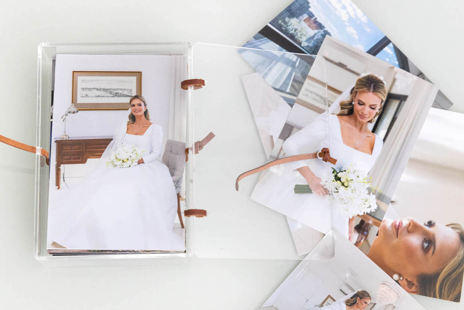 As fotografias são entregues em mídia digital (pen-drive) e também em uma elegante caixa de acrílico para todos os nosso noivos. Escolhemos cuidadosamente 100 imagens do casamento, especialmente escolhidas pelo fotógrafo, e as imprimimos no tamanho 10x15cm, conferindo-lhes uma característica única. O grande segredo esta no fato de que cada caixinha é midiculamente feita a mão, uma a uma.