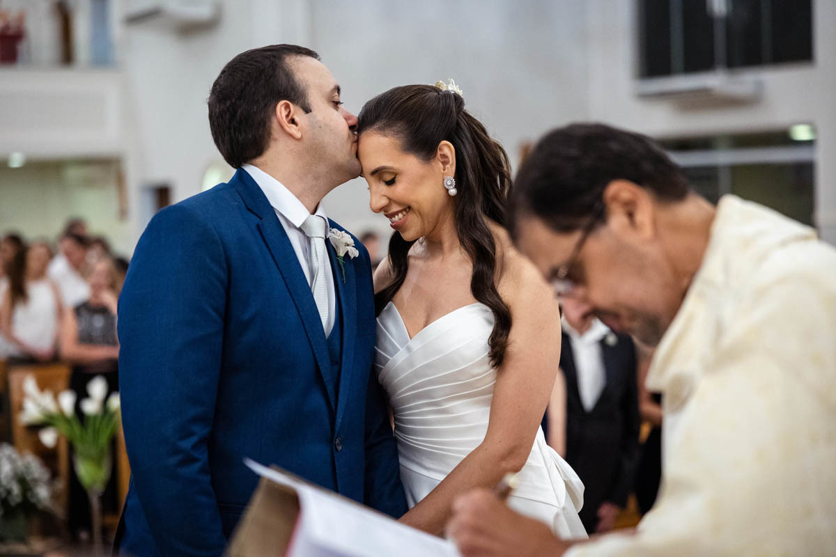 No altar, onde o céu parece tocar a terra, as palavras já não dão conta de explicar tudo o que o coração sente. É um encontro espiritual profundo, um momento em que o amor amadurecido pela caminhada do casal recebe novamente a bênção de Deus. Ali, aquele “sim” novamente pronunciado se torna eterno e abençoado, diante da família, dos amigos e de uma igreja testemunhando a graça desse casamento religioso.